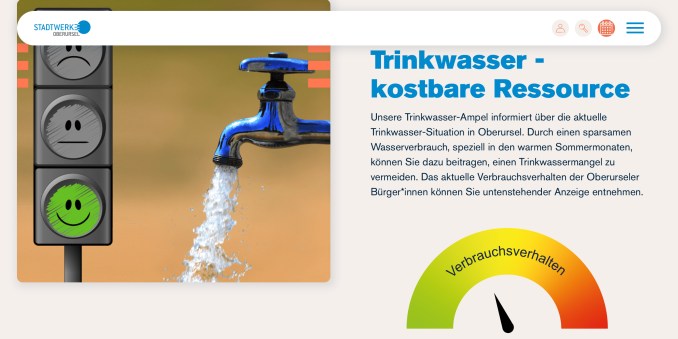 Eine Wasserampel ist ein Kommunikationsinstrument, das Verbraucherinnen und Verbrauchern eine Orientierung für ihre Wassernutzung gibt. Den Wasserversorgern wiederum bietet die Wasserampel eine Möglichkeit, die Wasserabnahme in ihrem Versorgungsgebiet zu beeinflussen. Im Prinzip funktioniert es wie Verkehrsampel: Die angezeigte Farbe gibt aktuelle Hinweise zu den Wasserressourcen und der angepassten Wassernutzung. Bei „gelb“ sollte auf liebgewonnene Wassernutzungen verzichtet werden, bei „rot“ wird es dann schon kritisch und der Katalog der Einschränkungen deutlich länger.